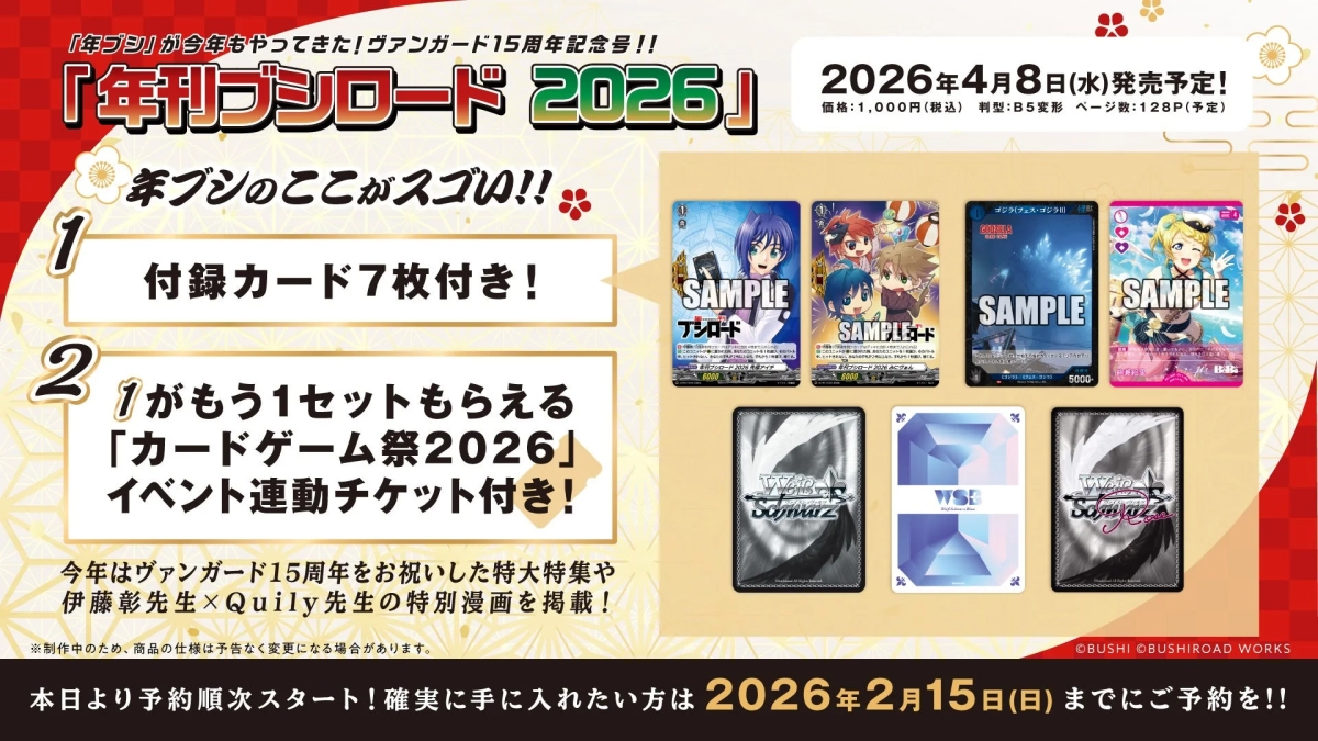 Get ready, card game enthusiasts! Bushiroad Works has announced the highly anticipated release of “Annual Bushiroad 2026,” hitting shelves on April 8, 2026. This special issue, priced at 1,000 yen (including 10% tax), promises to be a must-have for fans, especially those celebrating the 15th anniversary of “Cardfight!! Vanguard.”