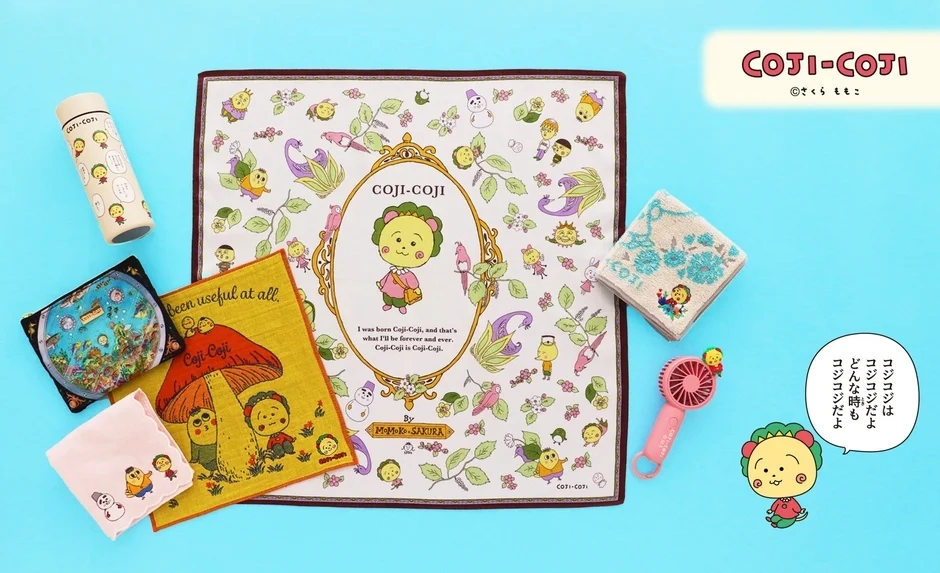 Created by the renowned manga artist Momoko Sakura, Coji-Coji is a masterpiece of fantasy and nonsense comedy. The character’s unique appeal lies in his perfectly pure existence, leading to a life lived in harmony with nature. Coji-Coji’s innocent, yet profound, statements and the distinctive world of the “Fairytale Country” where its inhabitants live their daily lives have been beautifully translated into this new line of general merchandise. The collection captures the essence of the series, offering diverse designs that allow fans to coordinate items to suit their mood and various occasions.