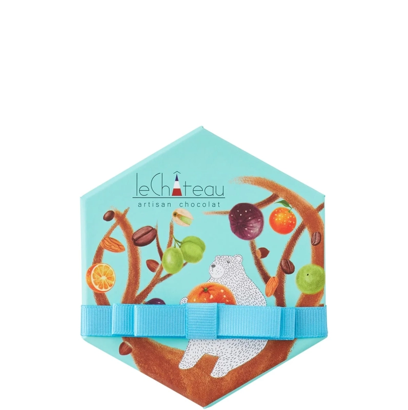 These diverse offerings ensure that there is a flavor for every preference, whether you prefer fruity, nutty, or savory undertones in your chocolate. The image of the bear with round objects further hints at the variety and joy these chocolates bring.