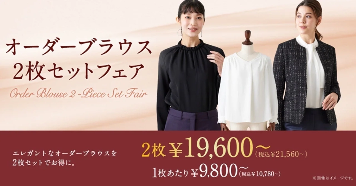 Under this special offer, customers can acquire two custom-ordered blouses for an attractive price starting from ¥19,600 (¥21,560 including tax), effectively making each blouse available from ¥9,800 (¥10,780 including tax). This represents a significant saving compared to the usual price of ¥11,900 (¥13,090 including tax) per blouse, making bespoke elegance more attainable.