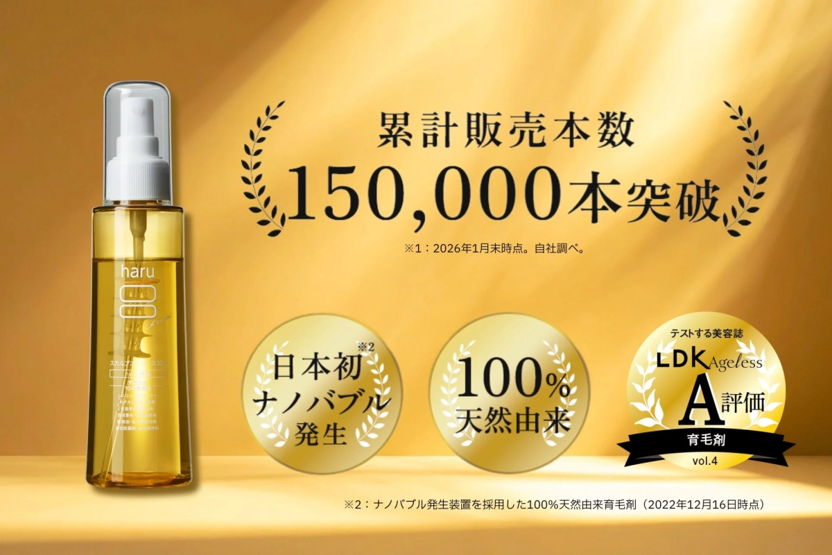 The haru Scalp Essence 100 (classified as a quasi-drug) comes in a 130ml bottle, priced at 4,620 yen (tax included), and is designed to last approximately two months. Its effectiveness is rooted in several pioneering features: