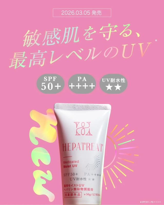 The ‘Hepatreat Medicated Moist UV’ [Quasi-drug] will be available for a main price of 1,700 JPY (1,870 JPY including tax) for a 50g tube. It is set to launch nationwide on March 5, 2026, across drugstores, variety shops, and various e-commerce platforms. For more information, visit the official website: https://zettocstyle.com/brand/hepatreat/