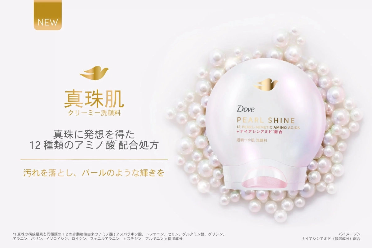 At the heart of the “Dove Pearl Shine” series lies its unique “Pearl Shine® formula.” Over 25 years of dedicated skin research, Dove discovered a fascinating parallel: both pearls and human skin share a layered structure composed of amino acids. This insight, coupled with the finding that many Japanese women expressed a strong desire for ‘transparent, glowing skin,’ propelled the development of the ‘Pearl Shine® formula.’ This proprietary blend incorporates 12 types of non-animal derived amino acids, identical to those found in pearls, as moisturizing agents. It is designed to not only cleanse the skin but also replenish it with hydration, paving the way for a translucent, pearl-like glow.