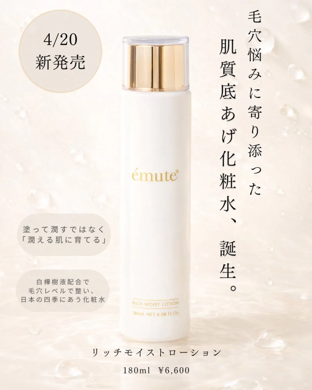 On April 20th, La Beaute, a company based in Isahaya City, Nagasaki Prefecture, will officially launch its new “Rich Moist Lotion” as part of the Emute series. This release follows an astonishing pre-order period where the product sold 4,300 units within six hours and a remarkable 6,207 units in just three days. This impressive debut highlights the product’s anticipation and its promise to revolutionize daily skincare routines.